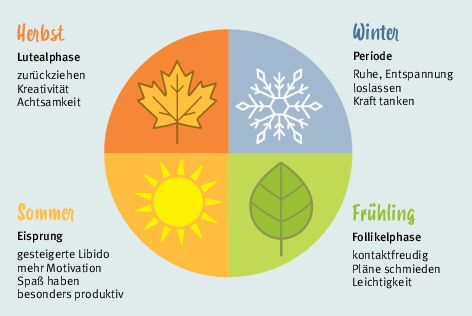 Wir Frauen sind grundsätzlich zyklische Wesen. Den Großteil unseres Lebens durchlaufen wir Monat für Monat ein Auf und Ab der Hormone. Unser Körper verändert sich ständig und häufig spüren wir, dass beispielsweise unser Energielevel, die Konzentration, Motivation oder Kreativität je nach Zyklusphase anders ist. Manchmal werden die Zyklusphasen mit den Jahreszeiten verglichen, wobei hier natürlich anzumerken ist, dass wir alle individuell sind und dieser Vergleich nicht für alle passt. Dennoch ist es für viele Frauen eine Orientierung, um ein Bewusstsein für den eigenen Zyklus zu entwickeln.